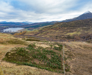 Innerhadden 2 is a mixed native woodland project on the Innerhadden Estate in Perthshire, above Dunalastair Reservoir. As a non-intervention woodland, it will be left to grow naturally without active management, supporting biodiversity by allowing native species to thrive. The aim is to restore native woodland on sloping marginal land, enhancing the local ecosystem and landscape.